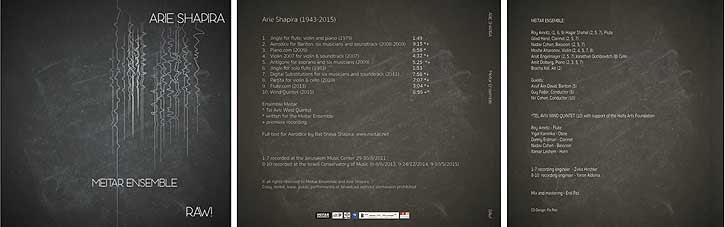 Haifa Arts Foundation assisted in producing a CD of Haifa composer, recipient of Israel Prize for composition, Prof. Arie Shapira (1943–2015). The CD contains ten compositions, seven of which were written especially for Meitar Ensemble and Tel Aviv Wind Quintet; nine pieces are performed by Meitar, the tenth by the Quintet.