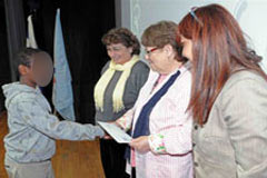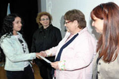 Deputy and Substitute Mayor Mrs. Hedva Almog and Mrs. Aviva Spigelstein, Director of the Foundation, give the scholarships to students |